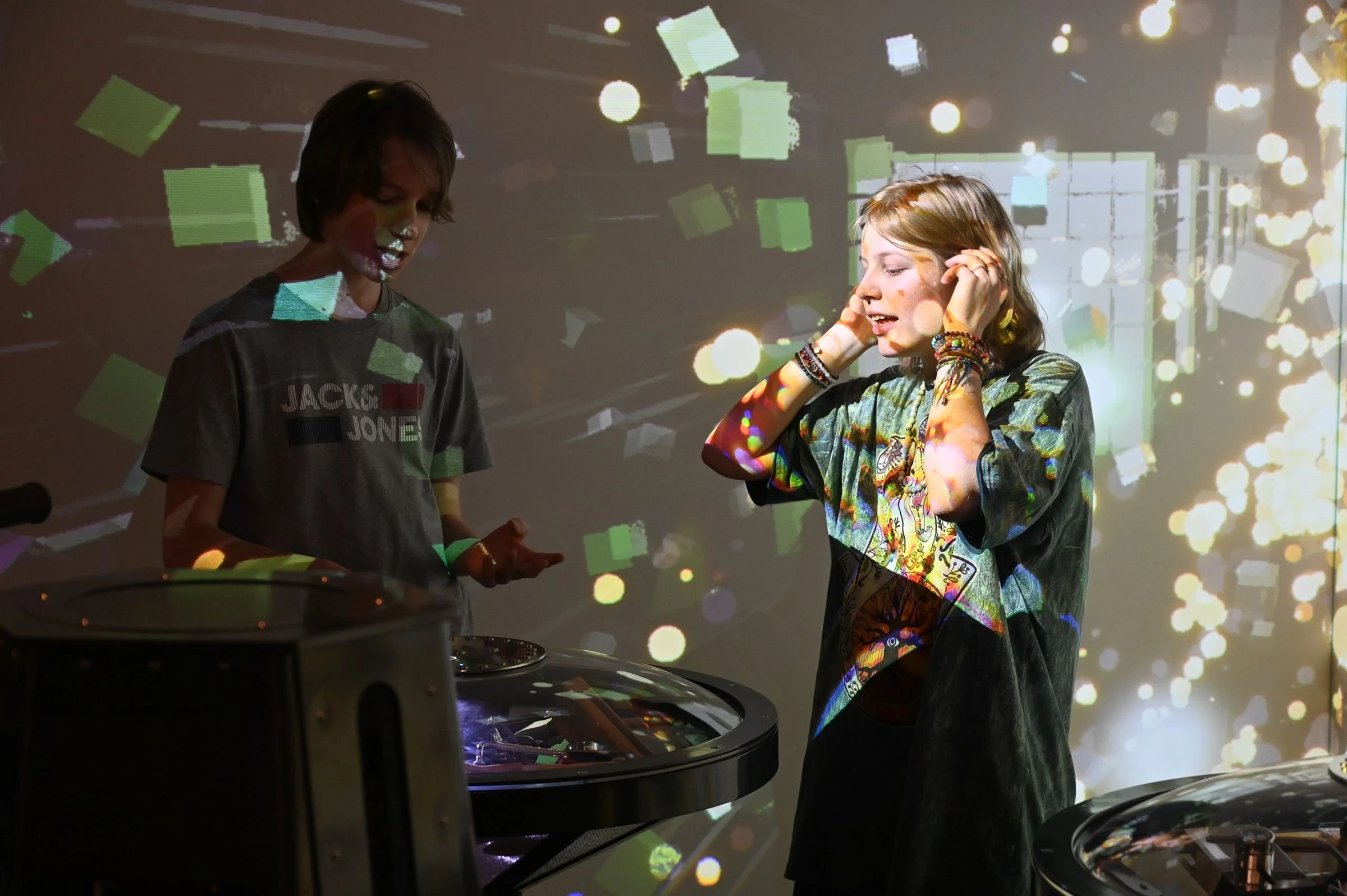 The installation also features an interactive projection – each instrument is represented by a different animated object, and the environment reacts to the tempo changes in real time.