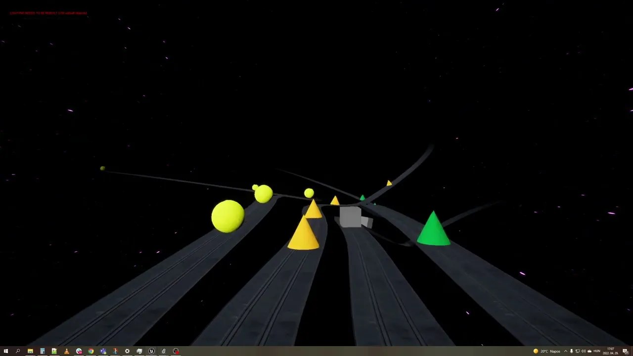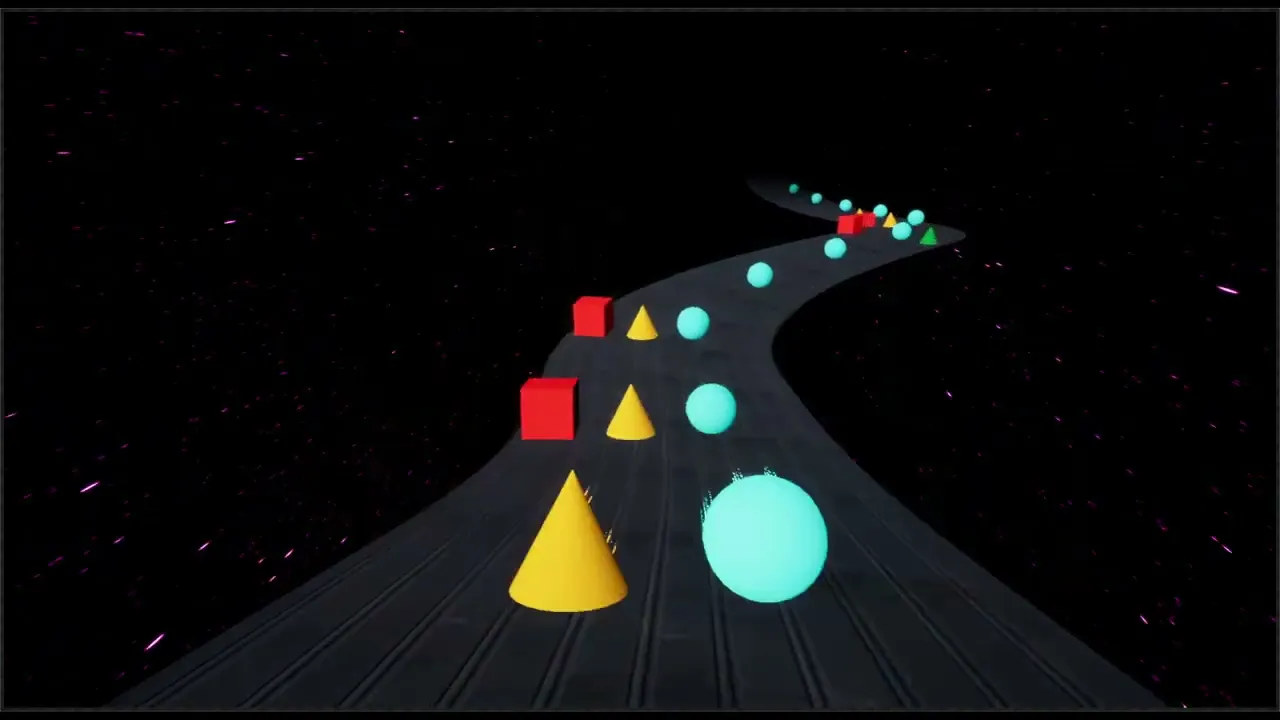 First the goal was to create a sensation as if we were travelling down an infinite road – similar to rhythm games such as Guitar Hero. I achieved this by making a spline mesh with a material that is fading at a certain distance to the camera. I animated its control points to simulate movement in various directions, while the camera in fact remained perfectly still aside from slight rotations.